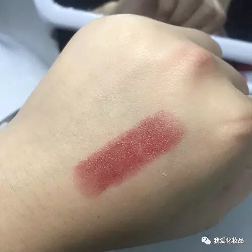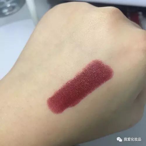 算是一个牛血色?比较深红,配大衣真的很美啊?有种冰冷的感觉,图里是涂了润唇膏的,没有那么润,具体看手上的试色。