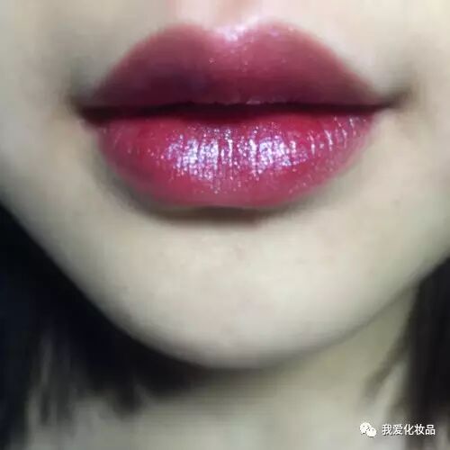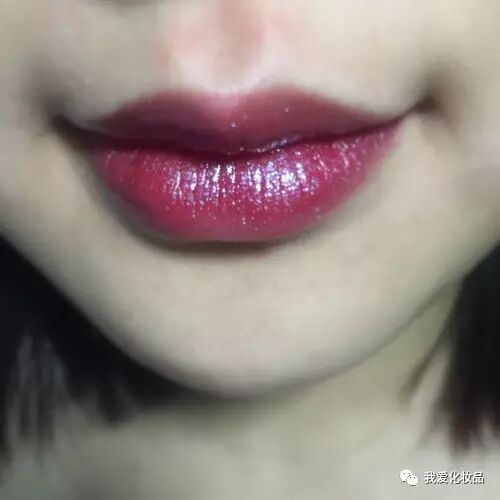 好美!偏玫红的色,哼,居然還有很多人把这个颜色卖掉!不识货!多美啊,显得嘴唇饱满!而且也不粘,其实没有这么水润,因为我涂了润唇膏!哈哈哈,好显白!