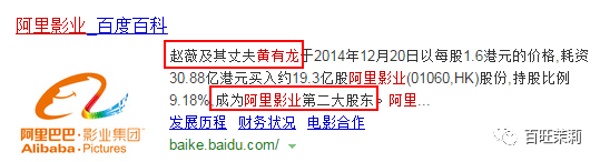 当然好朋友之间也不能不讲生意啦,同样在2014年底,黄有龙在资本市场上出手,入股阿里影业,成为阿里影业第二大股东