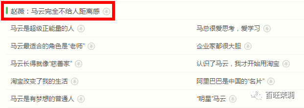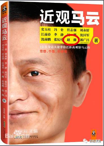 赵薇跟马云的关系就更密切了,之前各界大佬一起写了本叫《近观马云》的书,赵薇是其中唯一的娱乐明星↓