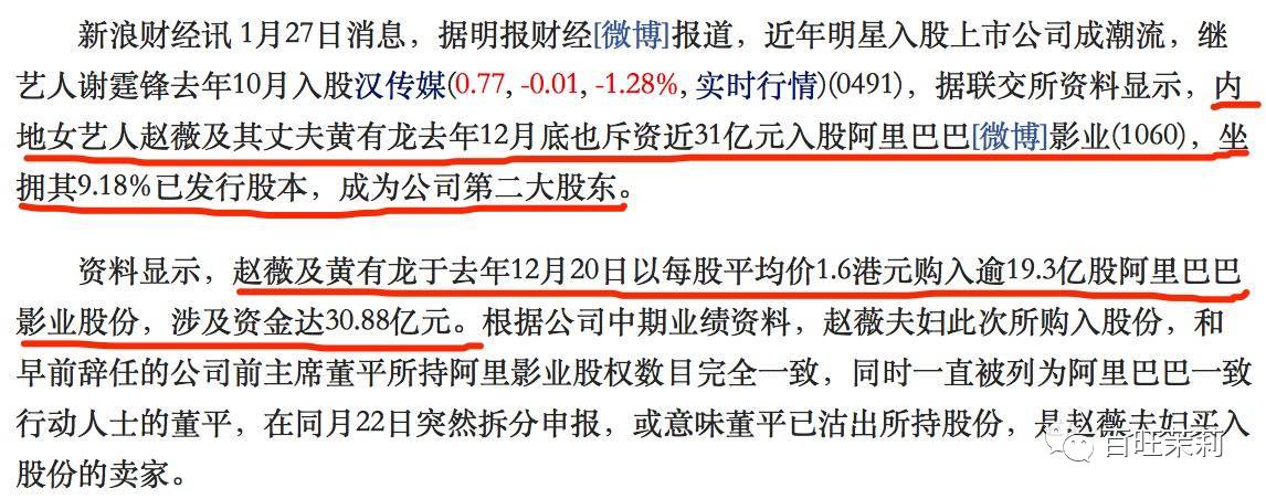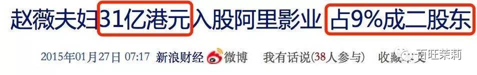 然鹅,赵薇在资本市场上最成功一次,是她投资阿里影业。2014年赵薇和黄有龙入股阿里影业31亿港币(折合25亿人民币)↓
