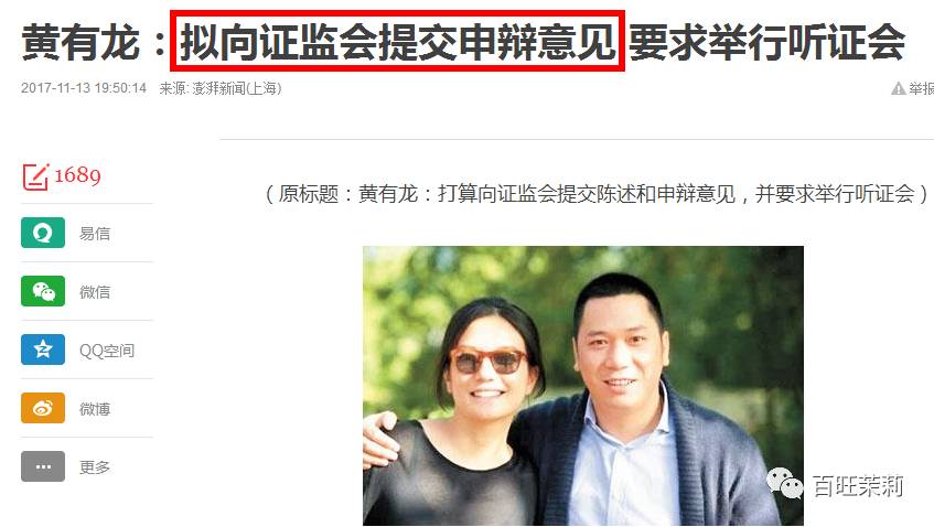 关于被证监会点名这件事,最新消息说黄有龙不服证监会处罚,要举办听证会