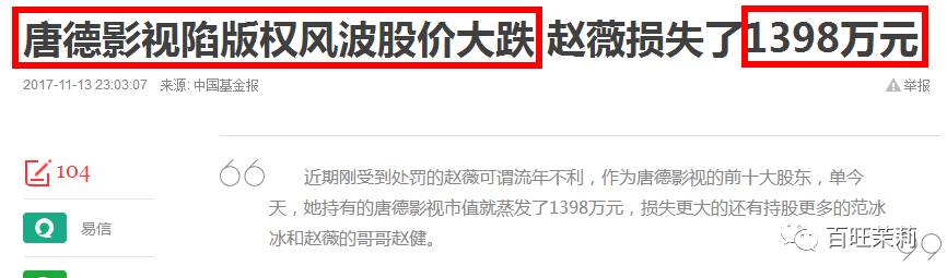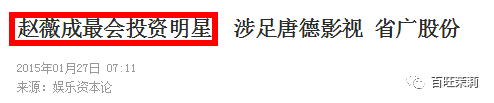 有了这次的成功,赵薇更加热衷于资本投资,胆子也越来越大。时至2011年赵薇入股投资唐德影视77.64万元↓