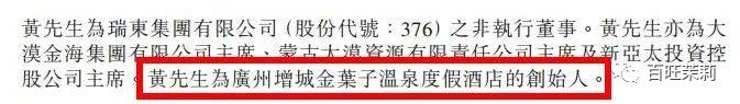 据黄有龙如今控股的顺龙控股的公告显示,在管理东润达期间,黄有龙还曾担任【广州增城金叶子温泉度假酒店创始人】