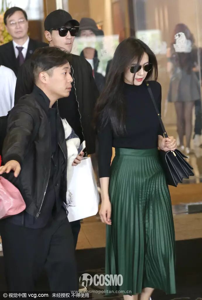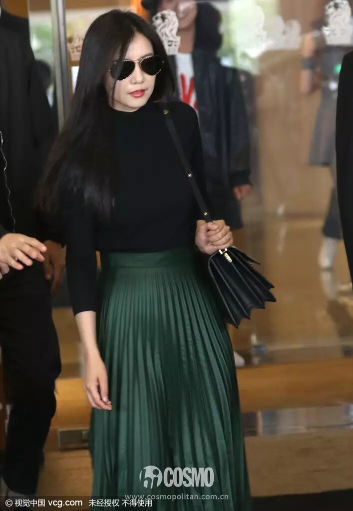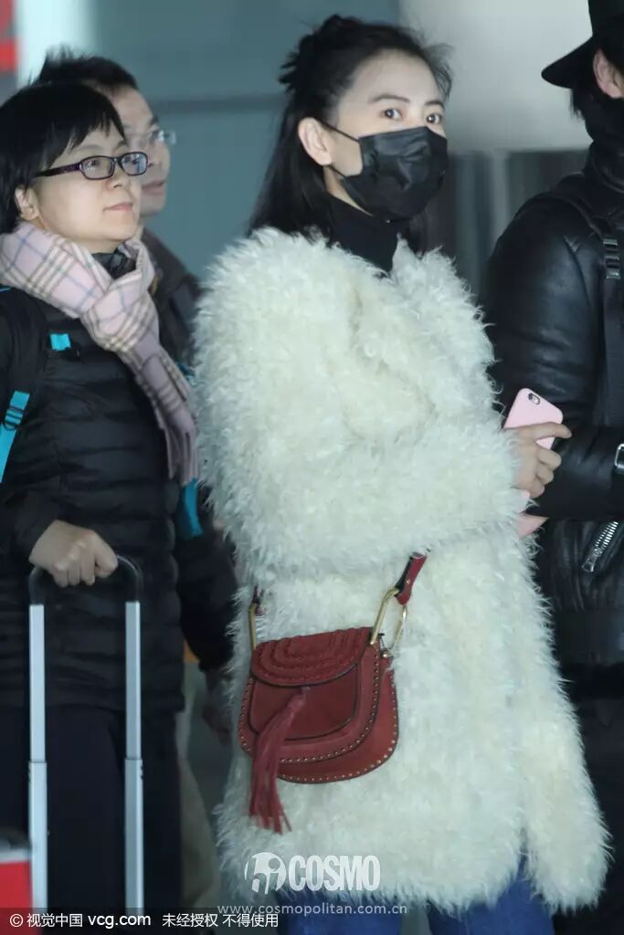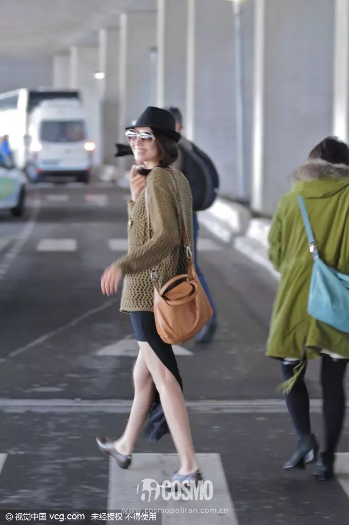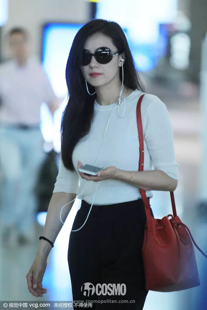 高圆圆这只红色的经典款小猪包也是她的机场街拍中出现过很多次的,红色又萌又少女,而且搭配深色系的衣服更加抢眼。