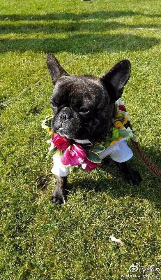 李欣汝还养了一条小法斗,在微博上呼吁大家帮助流浪狗狗。