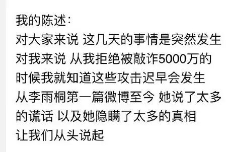 9月21日,早前一直被李雨桐爆料的薛之谦终于反击了!他发表长文,透露女方曾出轨,其家人还曾借着其堕胎一事企图讹钱。而在这之前,薛之谦被李雨桐爆料的内容,不仅有薛之谦拿女方超过千万的钱,还有曾劈腿等黑料。