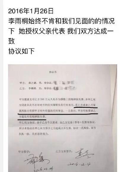 7、2016年1月,李、薛两家达成协议,薛之谦赔偿200万。2月初,薛之谦还完余款140万。