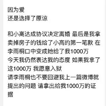 2、薛之谦和高磊鑫离婚时给女方一千万,不是从李雨桐处拿的,而是他自己用卖掉房子的钱给的。而李雨桐一直拿不出自己给薛之谦一千万的证据。