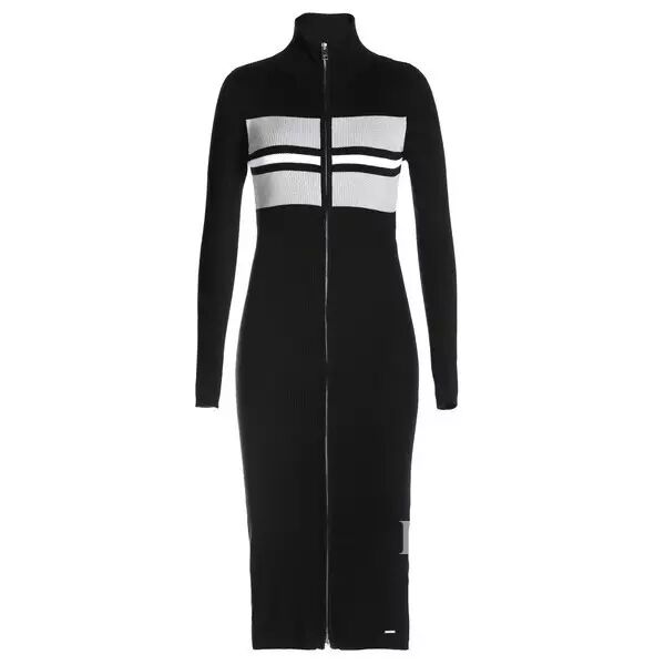 将过膝针织开衫的拉链拉成露脐开衩款,露出细腿与平坦小腹,秋日的单品也有了夏日的感觉!