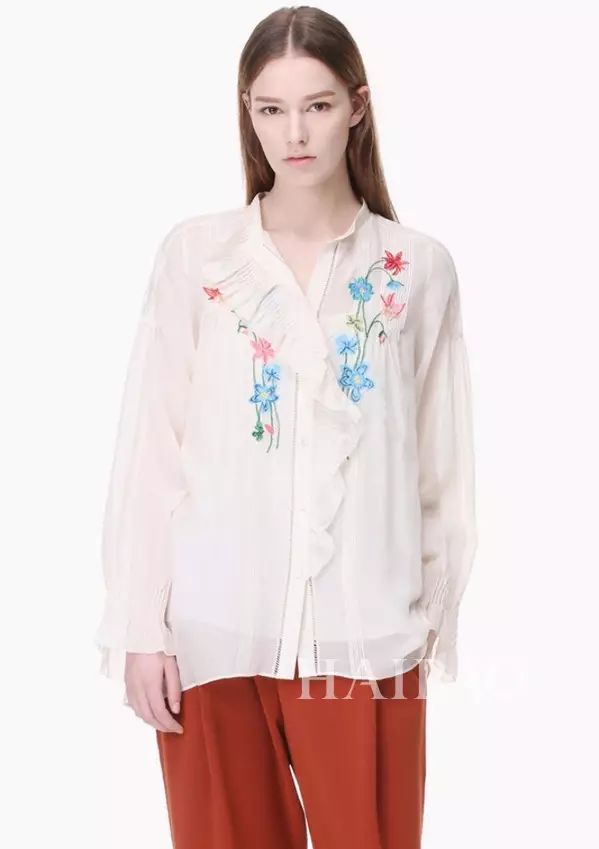 金所炫所选的荷叶边刺绣衬衫与她“国民美少女”的年轻甜美气场很登对,但衣服装饰一堆,发型还是捯饬捯饬弄得清爽些为妙!