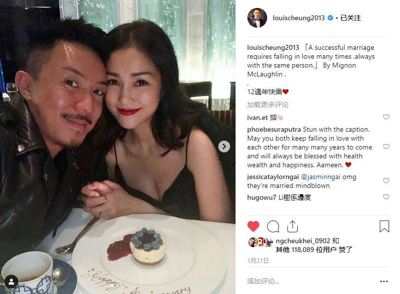 张继聪上载一张由美国作家及新闻工作者Mignon McLaughlin 写的金句“A successful marriage requires falling in love many times ,always with the same person.(一段成功嘅婚姻要不断与同一个人堕入爱河)”送给老婆,相当浪漫!