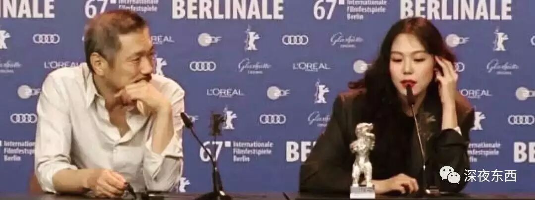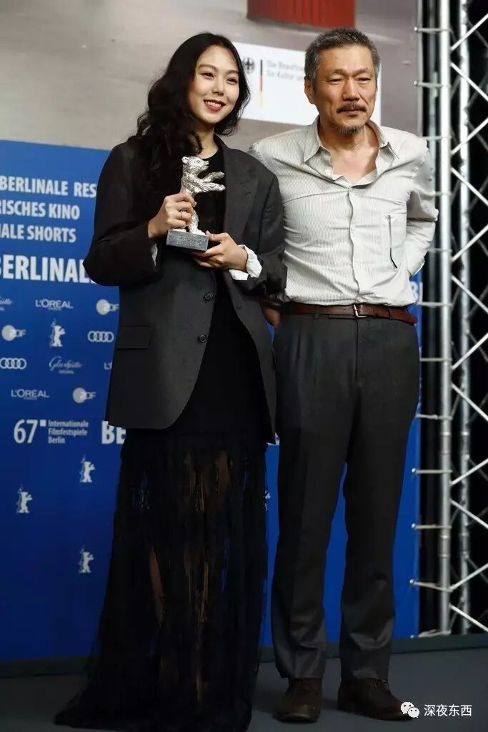 金敏喜在领奖台对洪尚秀表白,洪尚秀给穿着单薄的她披上西装外套。穿着导演的衣服婀娜摇曳对全天下喊出“我爱你”,简直是天然狐狸精。