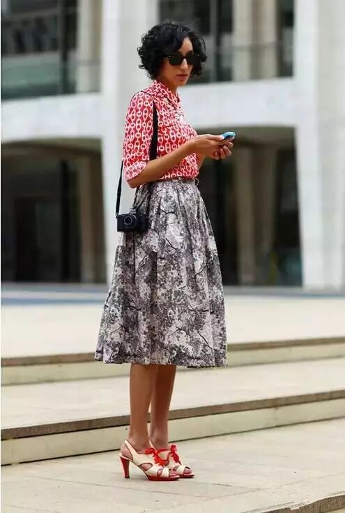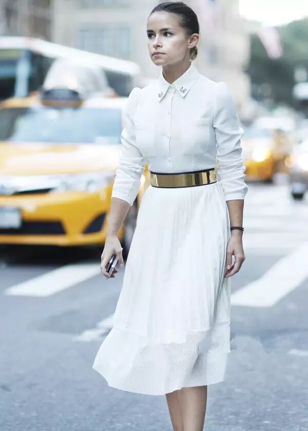 A字裙+衬衣这个最经典的搭配组合,再过一万年都不会过时!这个搭配应用的场合最广泛,即使是穿去办公室,也不欠严肃。