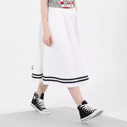 带点海军风的这条A字型长裙,给人感觉就是满满的学生妹的即视感:
