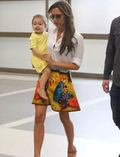 人生赢家贝嫂的完美A字裙造型,娃是拿来凹造型的吗?