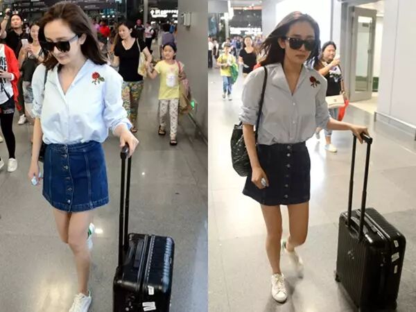 杨幂这身牛仔A字裙+衬衣哪里看得出这是孩子的妈!所以这么有活力又显大长腿的裙子怎能不入手呢?