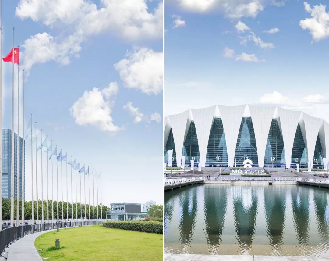 当天场馆外还悬挂了全国各地蔚来车友会的旗帜,真的是还没挤进主会场,就被来自四面八方的车主的热情感染到了。