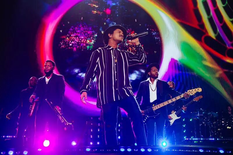 终于等来了演唱会的正式开始,火星哥带来了一首又一首红遍宇宙的大热单曲:Finesse、24K Magic、Treasure、Locked Out of Heaven……现场气氛真的High到爆炸啦。