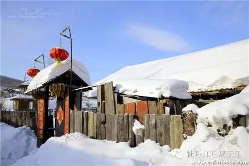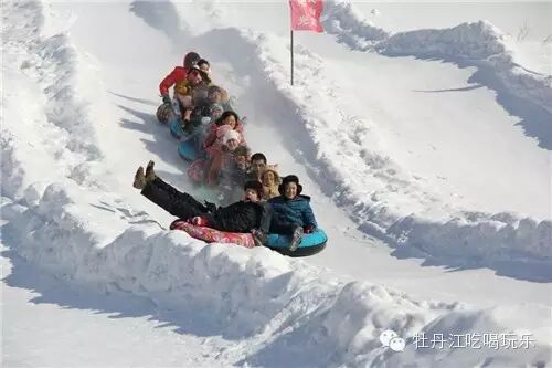 眼睛随处可见红灯笼、木栅栏、带着白色尖顶的房舍、金黄色的苞米穗、往返的牛爬犁。还有各种滑雪小娱乐活动,我们随即回到儿童时代,大家租了雪圈,轮流玩着,那种从高处飞驰而下的感觉真的很刺激,很过瘾!