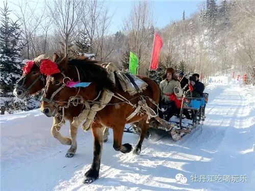 马拉爬犁:坐在马爬犁上,由马夫驾驶,在宽敞的马车道上转上几圈,听着马铃叮当,让你体验在雪地上扬鞭疾驰和大自然亲密接触的乐趣。