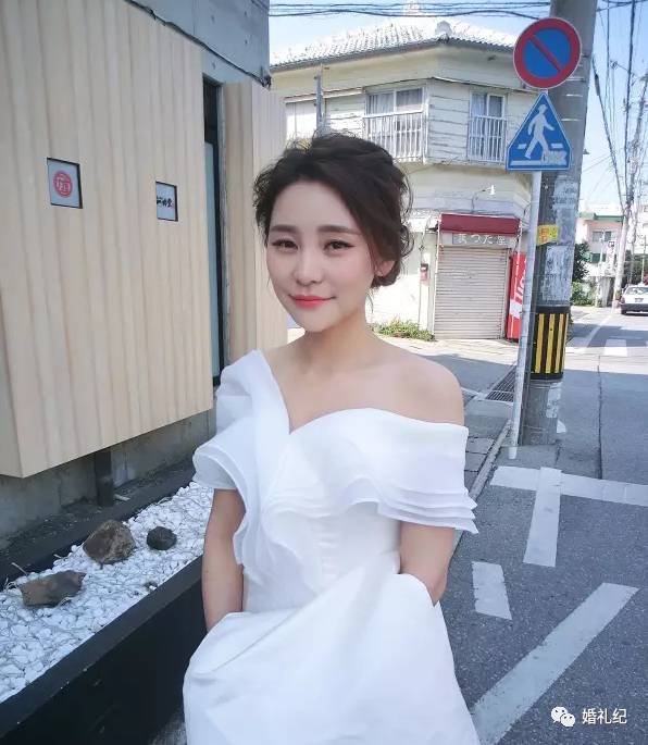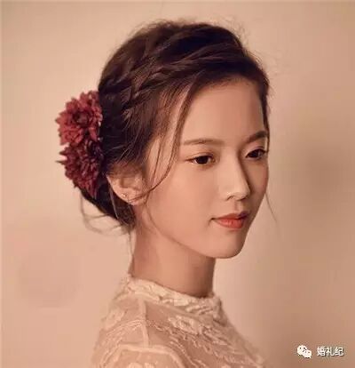 同时方脸新娘不要选择大光明,大光明只会把你的脸型缺点暴露无遗,斜刘海加简单的盘发,就可以气质满分。