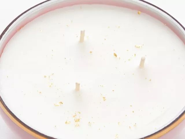 蜡烛用的是大豆蜡,160g,天然无毒,表面洒了24k金粉,华美。