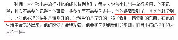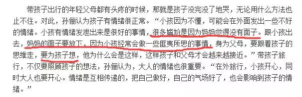 看得出来,孙俪真的花了很多的心思在孩子身上。而且这些心思,都是经过深入思考的。比如她曾经在采访中提到过带孩子旅行的事情。她说,很多家长会因为小孩子闹而尴尬,而这种尴尬就是因为妈妈觉得没有面子。所以跟小孩出去,妈妈的面子要放下,双方也要彼此传达积极的情绪。