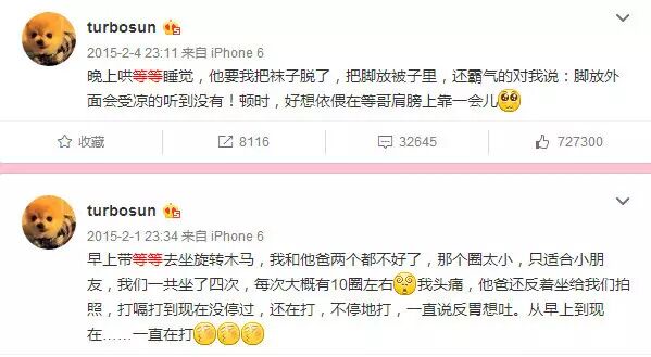孙俪发的微博不多,但不少都是关于等等和小花妹妹的,有时候翻翻孙俪微博里的小花妹妹,都会觉得这简直就是一出“风一般女子”的成长史。而且孙俪曾经在采访中提到过,不知道是不是因为小花妹妹有个哥哥,她从小就对球啊车啊感兴趣,对娃娃的感觉就一般。