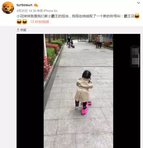 话说“霸王花”这个名号是怎么打出来的呢?上个月,邓超微博分享了小花妹妹魔性高抬腿玩滑板车的视频,视频中,小花妹妹穿着米色小风衣,踩一辆粉红色的滑板车上,驾轻就熟。
