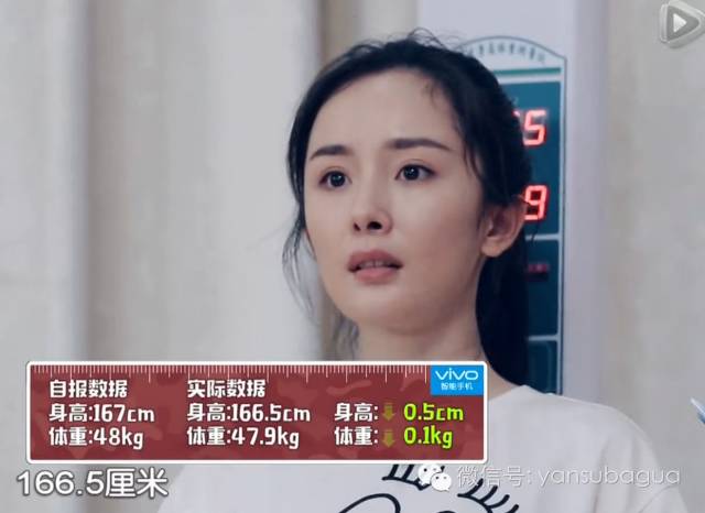 量体重的时候,杨幂机智地跟班长请示能不能脱外套称,结果她是唯一一个实测体重反而比自报更轻的。