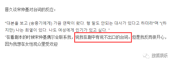 比如晋久就说宋仲基和他一起看剧本的时候,就坦言有自己说不出口的台词。