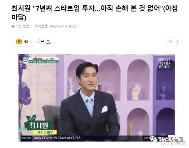 在当天的节目中,崔始源自曝从2015年就开始了投资事业,并表示“(当时)因为有了好机会,所以进行了投资。”