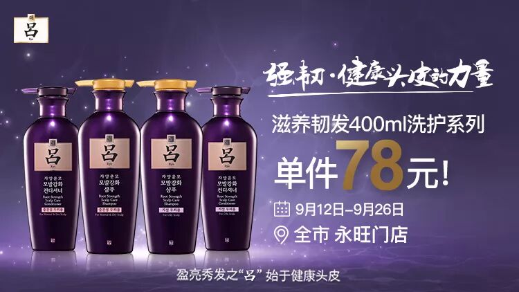 头皮护理强势阵容来袭!吕Ryo-滋养韧发密集强韧洗发水/护发乳+精华发膜+精华液,从洁净/养护/强化三方面着手,带来三重强大功效: