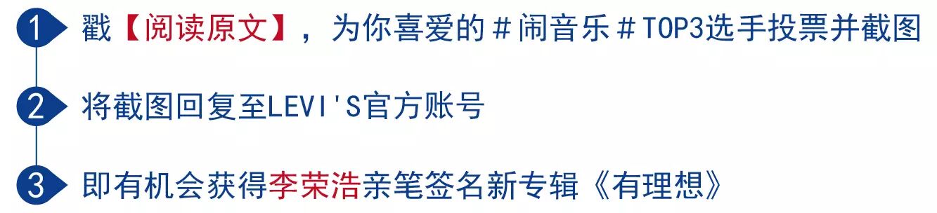李荣浩、李灿森、唐志中等明星将到场为Blue Jeans庆生,“闹音乐”原创音乐计划3强选手也将在现场进行表演,并揭晓最终冠军!