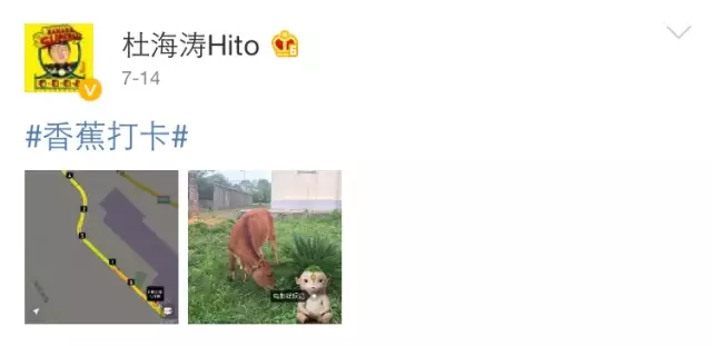 从6月起,杜海涛就在微博发起了#香蕉打卡#话题,作为自己每天运动的打卡机器。
