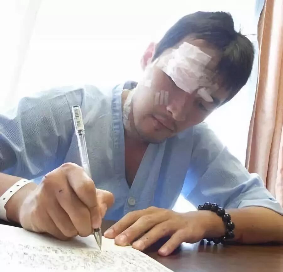 一开始,他常说,伤疤是男人的勋章,只不过,我把这个勋章别眼睛上了……他还说,当初自己就想,如果眼睛失明了,就去演“柯镇恶”。自己一笑,大家莞尔。