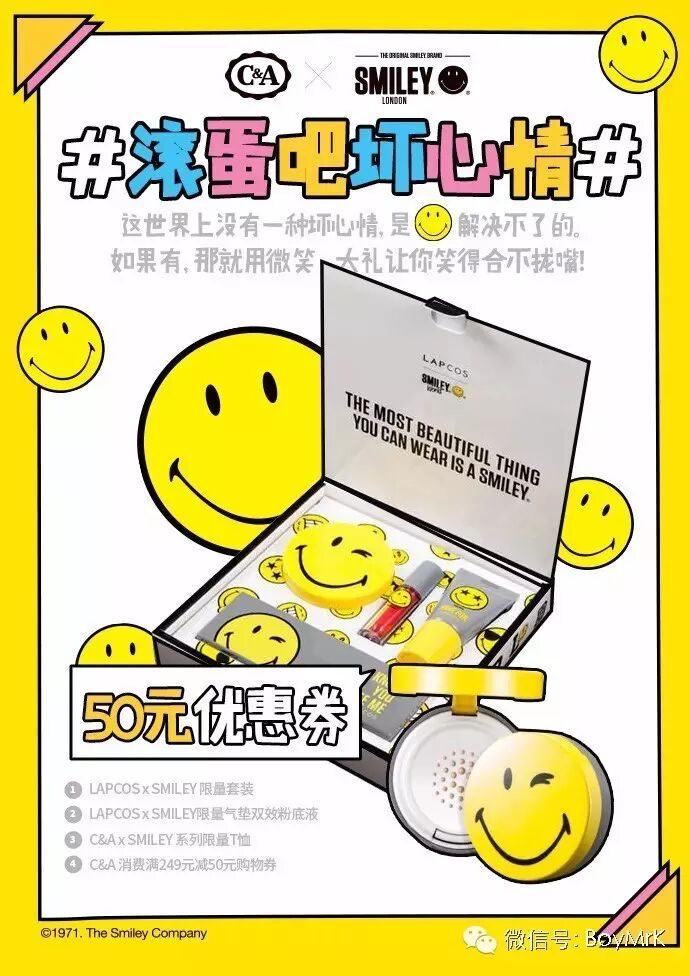 除了店铺买买买,当然你还可以在手机上参与互动,并且拿奖品。点击文末“阅读原文”就能参加C&A X Smiley的小游戏。制作自己的专属表情包去逗乐朋友,就有机会拿到这个系列的限量T恤或LAPCOS x SMILEY的各种美妆小物。或者也可以到以下指定门店去参与互动直接玩起来哦~