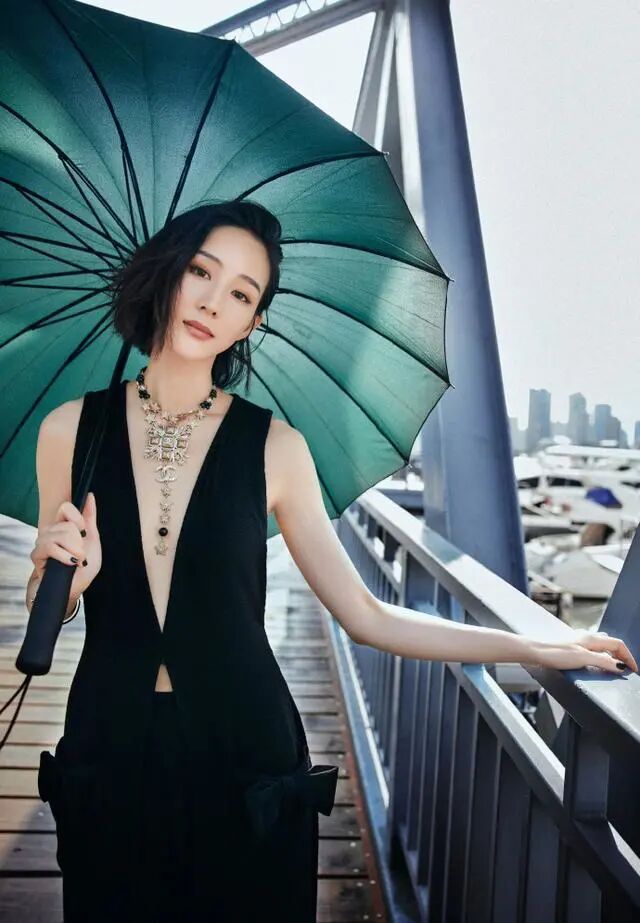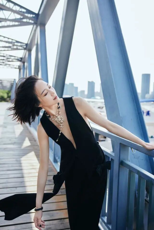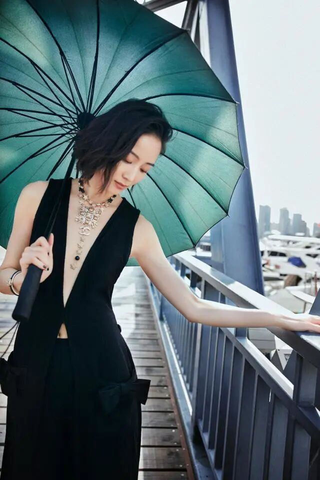 即便黑色没有被用在女人味十足的裙子上,也能展现出迷人的曲线感。比如张钧甯最近在红毯上的全黑造型,就用深V款马甲搭配阔腿裤,长至脚踝的马甲潇洒飘逸,加上粗如水桶的阔腿裤,既显飒爽干练的气质,同时还露出了精致的颈线。