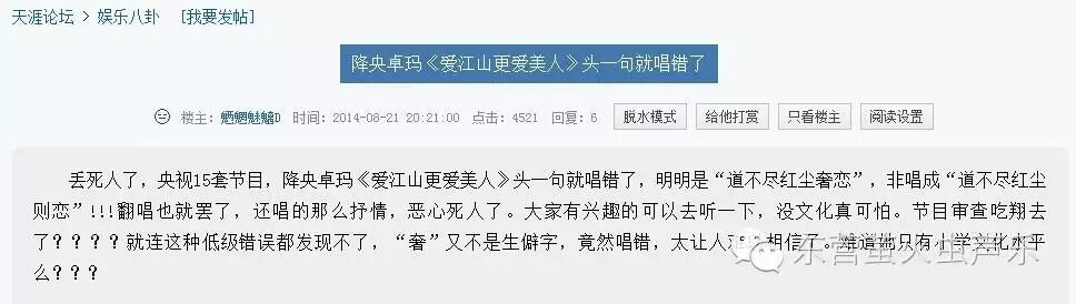 降央卓玛,异域特色的身世背景,温暖宽厚的歌声,端庄从容的台风,君临天下的气度,注定她将是21世纪歌坛的一颗巨星。”从普通的藏族姑娘到“天下最美女中音”,独特的藏文化滋养着降央卓玛。她的成功,不仅是在藏族同胞中备受欢迎,也受到其他民族观众的喜爱。她喜欢民族歌手的印迹,也牢牢记着老师的训导:永远保持她的风格,不迷失方向。正因为她有一个民族特殊的藏族歌手称号的标签,她才会有今天的成功。她是藏族人,她完全用自己民族的风格去演绎想唱的歌曲。
