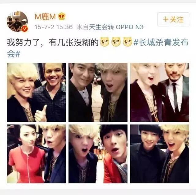 但自从参加完《长城》的发布会,鹿晗就得到了“糊鹿娃”的称号。