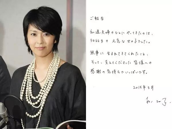 曾经和木村拓哉被称为“经典荧幕CP”的松隆子2007和46岁的知名音乐人佐桥佳幸结婚,婚后继续演艺事业,在2010年主演了电影《告白》。结婚7年,松姐姐2014年传出怀孕喜讯,并于2015年顺利诞下一子。