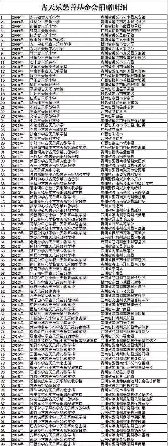 甘肃、云南、四川、贵州、广西……一所所古天乐小学、古天乐教学楼、古天乐宿舍楼拔地而起。