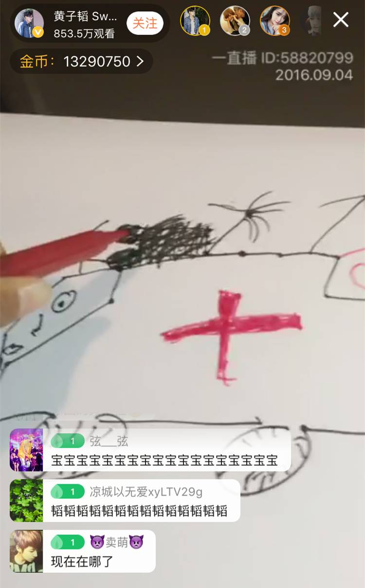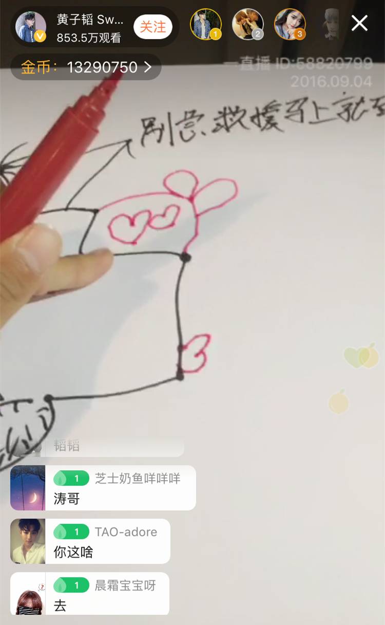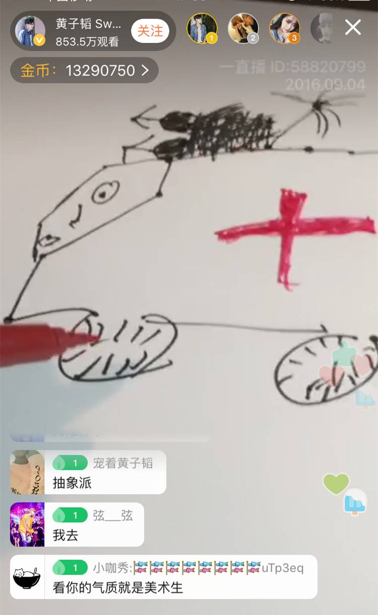 ▲先心疼韬韬1秒钟……明明今天直播的主题是“画出生命线”,可是看背景,wuli韬韬应该是在车子里。你是有多忙啊,画画都不能好好的坐下来,安静的画!