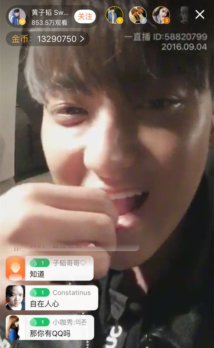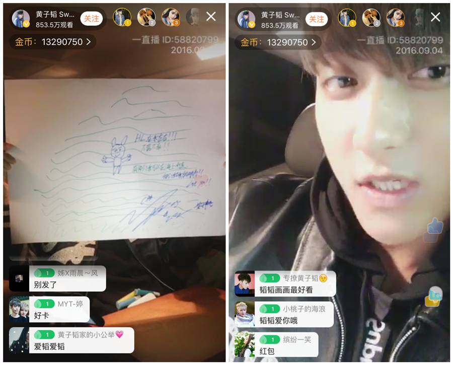 ▲黄子韬:(突然表白)我爱你们!