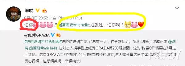 据悉,现场拍摄时陈晓对陈妍更是希呵护有加,幽默暖男功力频频引得陈妍希发笑,脑补一下场景都会有爱汁溢出。不仅如此,两人的微博也常常公开互动。陈晓说:“总有一天,你会跟我姓”,陈妍希则“回呛”:“姓就姓,怕你啊!”,陈晓赶紧回应“怕你”~~并加表情以示爱意!