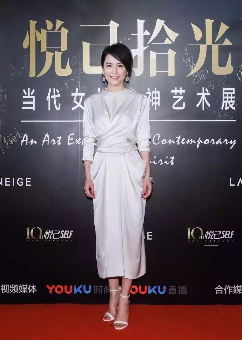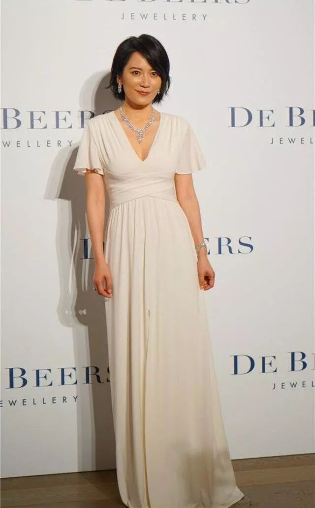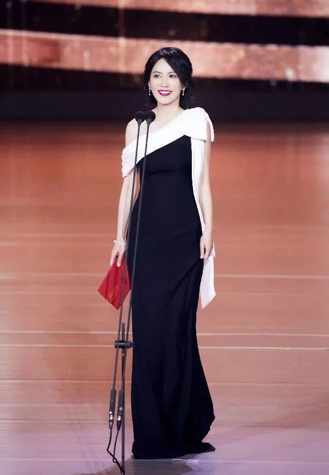 也许是因为俞飞鸿面前的刘海被分成三七,所以我觉得刘海还是有点厚,不是特别好看,而且他们的脸型相当娇小。她穿的晚礼服是银色的,凸显了她的身体优势,她的脚配有一双白色高跟鞋!