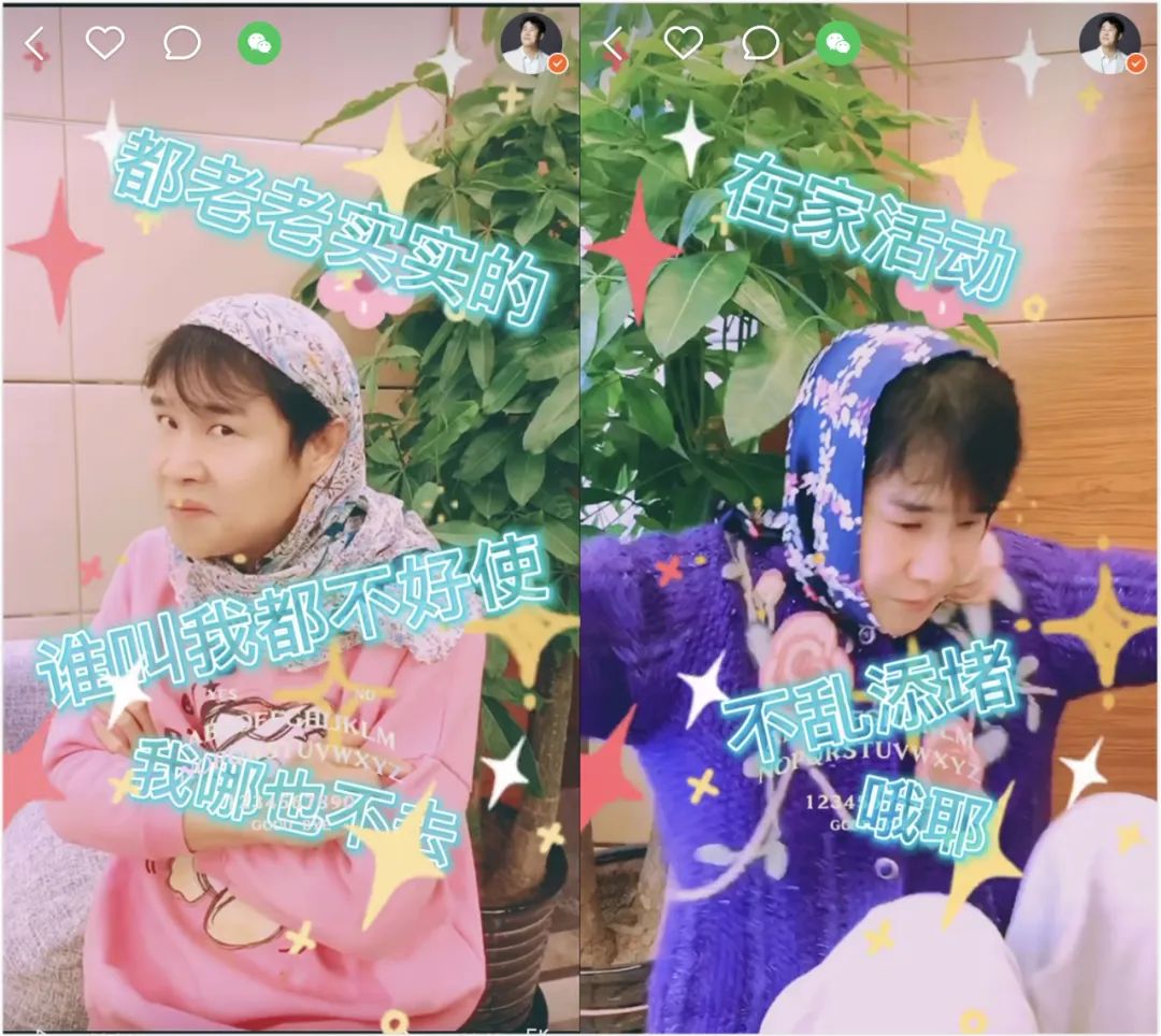 在快手上,他更是使出浑身解数,贡献出了自己最拿手的绝杀技:反串!比如,他扮演一位苦口婆心的东北大妈,劝诫老铁们宅家别出!这样的小创意,一方面为许多宅家的老铁解了闷,另一方面也通过趣味的方式达到了防疫宣传目标,一举两得。