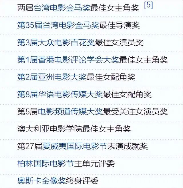 陈冲是两届金马奖影后,获得的荣誉可以截一屏,她还是奥斯卡终身评委,在国内外都享有盛誉。