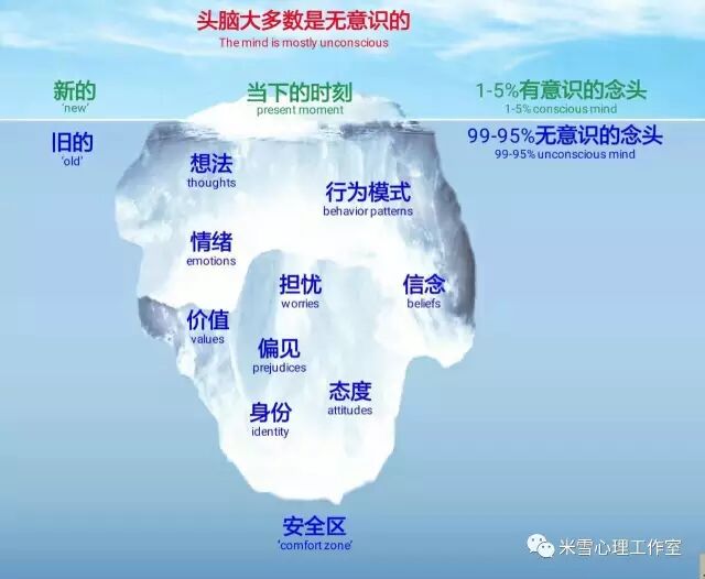 什么是潜意识?我们的意识分为表意识和潜意识,表意识是我们可以觉知的意识,潜意识是存在于我们但没有觉知的意识。潜意识占我们意识系统的90%。